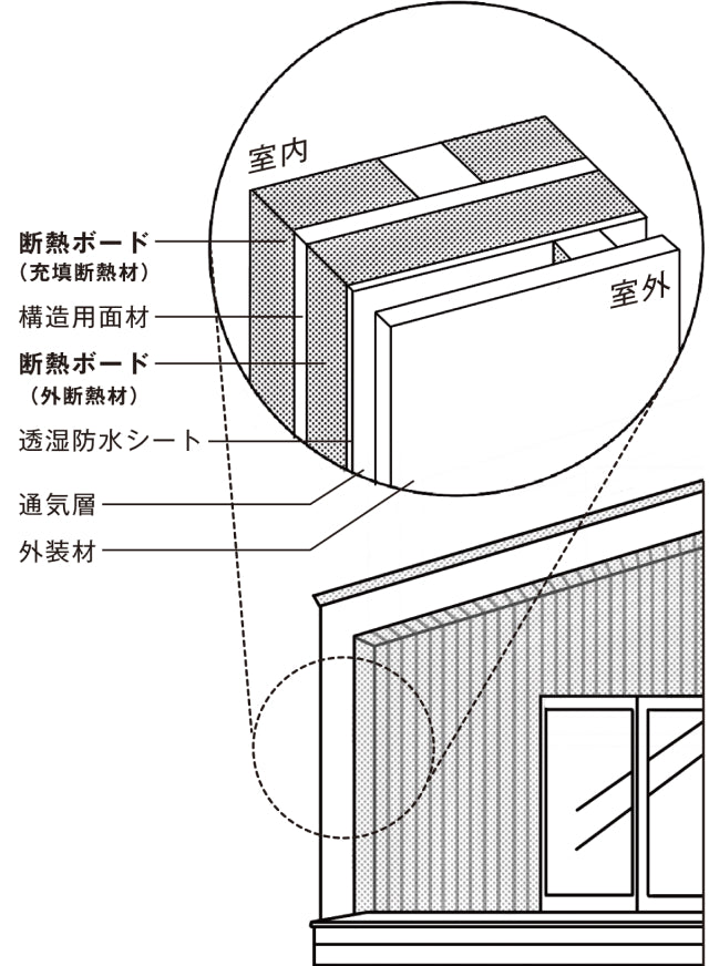 「オリジナルパネル」は外壁と断熱材を一体化しているため施工品質を高めることができます。品質が高いため、建物の隙間「C値(隙間相当面積)」の性能を上げることができます。いくら高断熱の建物でも隙間が空いてしまっては内部の熱が逃げてしまいます。断熱性と気密性のどちらも担保することで快適な空間が生まれます。