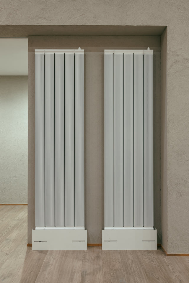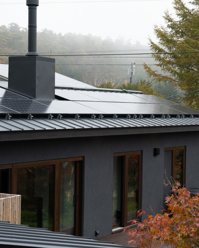 薄さわずか25mmの輻射式冷暖房パネルは、ミニマルな別荘にフィットします。通常のエアコンとは異なり風を一切使わず無風かつ無音な空間を提供します。輻射式暖房は、物体に直接エネルギーを伝えるため室内を均一かつ快適に暖めます。また、冷房はパネルを冷水で冷やすことで輻射エネルギーを吸収し、部屋全体を涼しく保ちます。これにより、エアコンの風による健康への悪影響や、有害物質・ホコリによる呼吸器・粘膜のトラブル、ドライアイ、エアコン病などから解放されます。この優れたシステムは、従来のエアコンと比べて室内温度を効率的に調整し、驚くべき30%のエネルギー使用量削減を実現します。