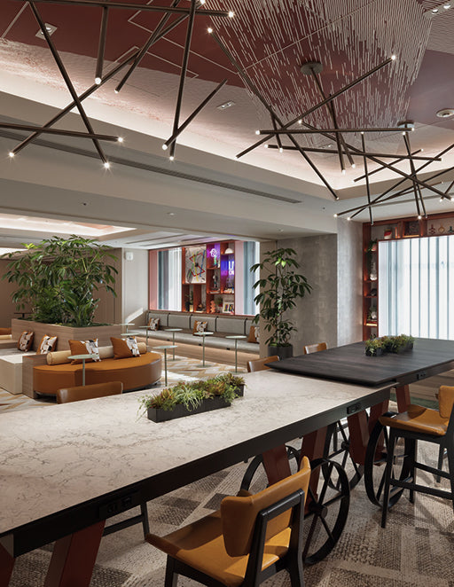 休憩スペースとしても使えるスペースではカフェでのランチミーティングなどにも使えます。