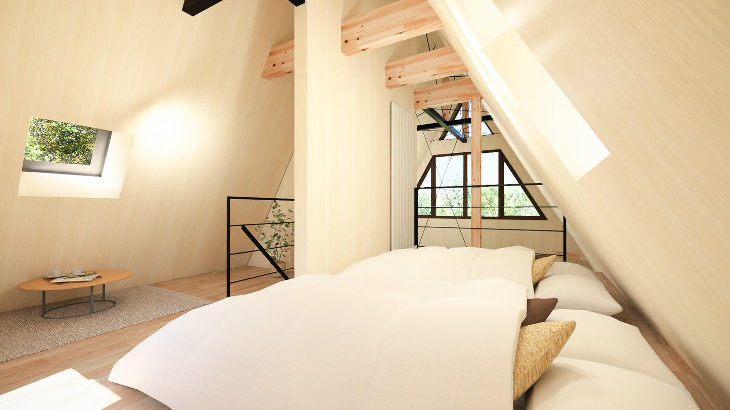三角屋根が特徴的なこの別荘は、まさに大人の秘密基地です。