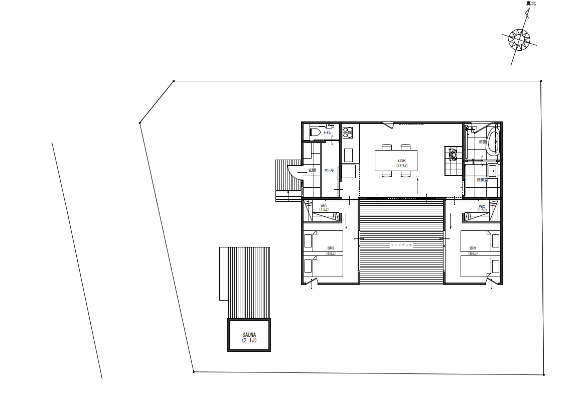 - * 海外の別荘のような、中庭を囲む間取り。 コンパクトであり、程よい距離感でお互いを感じられる居室空間と、究極にプライベートなテラスは、今までありそうでなかった間取りです。フィンランド式サウナ付きです。