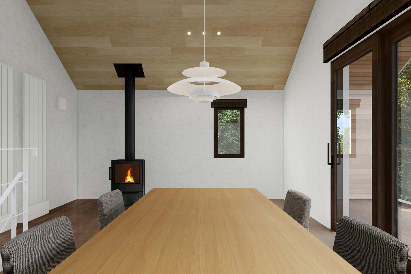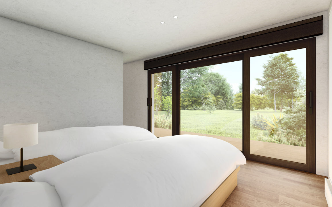 L-02Aはリビングダイニングスペースを広く確保し、薪ストーブを設置することもできます。より非日常を感じられるプランになっています。