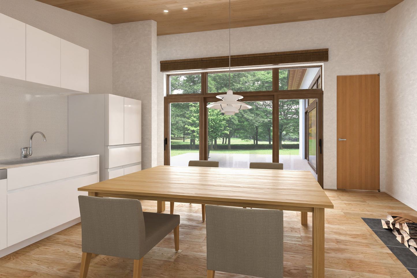 リビングからフラットに繋がるウッドデッキは、アウトドアリビングとしてもお使いいただけます。