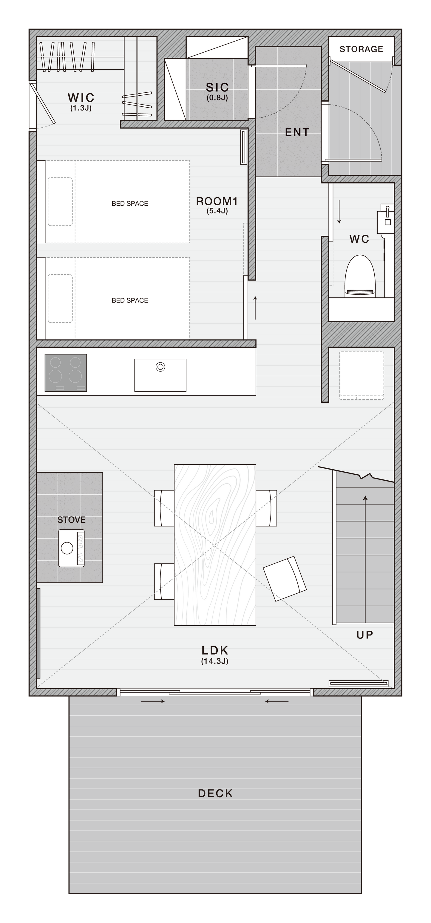 玄関にはシューズクローク、各部屋にもWICと、コンパクトでありながらも収納もたっぷり、こだわりを詰め込んだプランです。